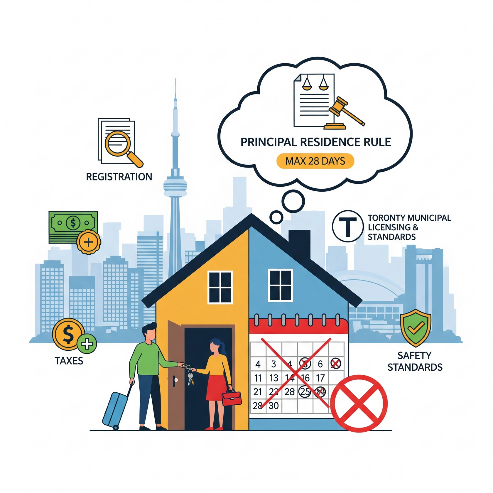 The cornerstone of Toronto’s policy is the principal residence rule. You can only operate a short-term rental in the home where you actually live. That means: